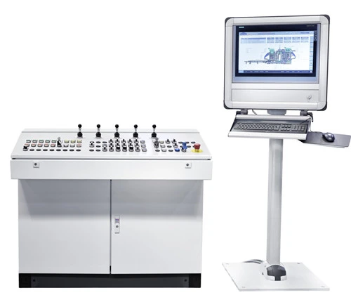 Painepäätä, muottirunkoa, aggregaattiautoa ja kangasautoa ohjataan peukalointipäätä, muotin runkoa, syöttölaatikkoa pohjasekoitukselle ja kasvosekoitukselle ohjataan