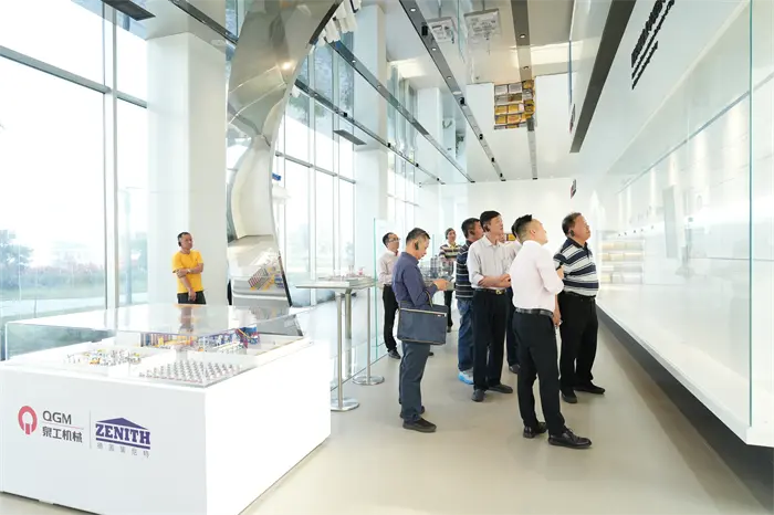 Puheenjohtaja Lin Boqian ja hänen valtuuskuntansa vierailivat ensin Quangong Co., Ltd.:n kehityshistorian näyttelyhallissa, ja graafisten näyttötaulujen, videomateriaalien ja fyysisten näyttelyiden avulla he ymmärsivät täysin yrityksen taistelun sen perustamisesta alan johtajaksi. Quangongista vastaava henkilö esitteli yksityiskohtaisesti Quangong Co., Ltd.:n innovatiiviset läpimurrot tiilikonelaitteiden alalla yli 40 vuoden ajan sekä yrityksen filosofian "käsityö luo laatua ja teknologia johtaa tulevaisuutta". Puheenjohtaja Lin Boqian arvosti korkeasti Quangong Co., Ltd.:n saavutuksia teknologisen tutkimuksen ja kehityksen vaatimisessa ja alan päivitysten edistämisessä.