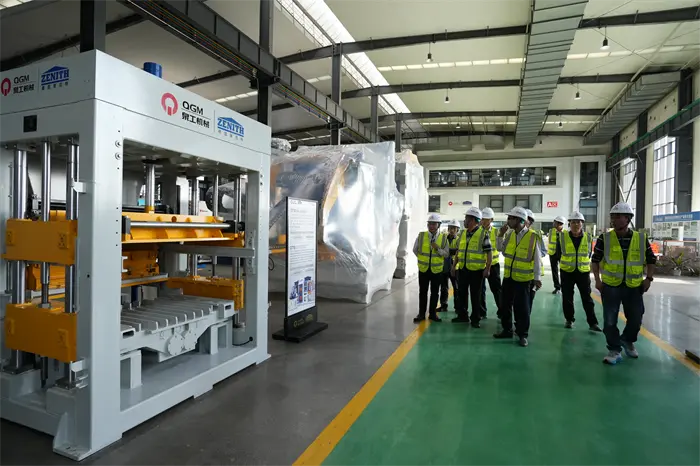 Sen jälkeen vieraat muuttivat tiilinäytenäyttelyalueelle ja katselivat erilaisia korkealaatuisia läpäiseviä tiiliä, jalkakäytävätiiliä, lohkoja ja muita QGM-laitteilla valmistettuja tuotteita ja ilmaisivat suurta kiinnostusta yrityksen "kiinteän jätteen kierrätyksen" teknologisiin saavutuksiin. Tiilenvalmistuslaitteiden esittelyalueella puheenjohtaja Lin Boqian ja hänen puolueensa tarkastivat ydinlaitteet, kuten QGM:n itsenäisesti kehittämän täysautomaattisen lohkonmuodostuskoneen ja älykkään tuotantolinjan, ja vaihtoivat teknisiä etuja ja markkinoiden sovellusnäkymiä paikan päällä. Puheenjohtaja Lin Bo vahvisti täysin QGM:n erinomaisen panoksen huippuluokan laitteiden valmistuksen ja vihreiden rakennusmateriaalien alalla ja korosti: "QGM on innovatiivinen malli Quanzhoun yksityisistä yrityksistä. Toivomme voivamme toimia jatkossa liiton roolina siltana, edistää teollisen ketjun koordinoitua kehitystä ja auttaa "Quanzhou Smart Manufacturing" siirtymään maailmanlaajuisesti. Varatoimitusjohtaja Fu Huabin vastasi, että yhtiö jatkaa tutkimus- ja kehitysinvestointien lisäämistä ja tekee yhteistyötä kaikilta elämänaloilta tulevien kumppaneiden kanssa tutkiakseen uusia mahdollisuuksia älykkäiden laitteiden ja vihreän valmistuksen integroituun kehittämiseen.