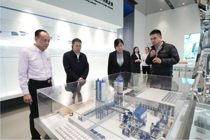 Delegaatio kiersi ensin yhtiön historian näyttelyhallissa. Yritysjohtajien opastamana he saivat kattavan yleiskatsauksen Quangong Machinery Co., Ltd.:n yli 40 vuoden kehitysmatkasta tarkasteltaen yrityksen erilaisia kunnianosoituksia, sertifikaatteja ja teknisiä saavutuksia. Valtuuskunta kiitti yritystä sen vankkumattomasta sitoutumisesta valmistukseen ydintoimialana ja jatkuvan innovaation filosofiasta ja tunnusti sen eläväksi mikrokosmokseksi yksityisen talouden laajemmasta kehityksestä.